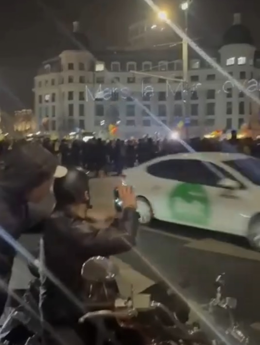 „În contextul adunării publice din data de 15 ianuarie, din Piaţa Universităţii, pe timpul deplasării manifestanţilor, un bărbat a proiectat un mesaj pe o clădire, stârnind indignarea celorlalţi participanţi la adunarea publică.