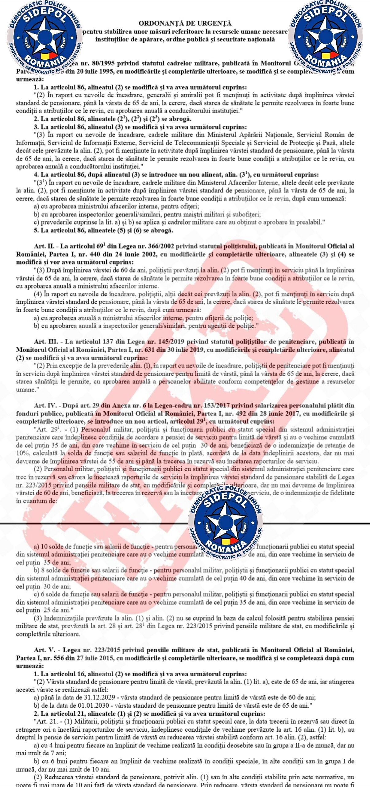 Mai precis, un document care ar reprezenta o nouă ordonanță de urgență, despre care însă Sindicatul Polițiștilor – Sidepol atrage atenția că nu este real.