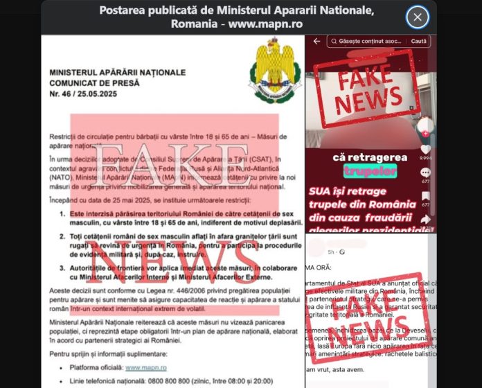 Ieri, MAI a transmis că este vorba despre „două noi încercări de dezinformare, pe subiecte care vizează apărarea și securitatea națională, distribuite în diferite platforme de comunicare digitală”: