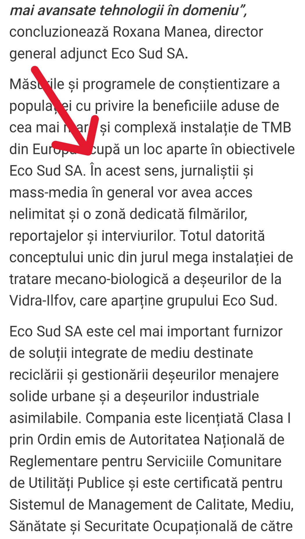 De câteva luni, spațiul public este inundat de advertoriale care ridică în slăvi compania Eco Sud SA. Titlurile plătite sună triumfal: „compania campioană a investițiilor”, „cea mai mare capacitate din Europa”, „instalație ultramodernă”. Din păcate, aceste texte nu sunt articole jurnalistice, ci simple comunicate de PR, publicate contra cost.